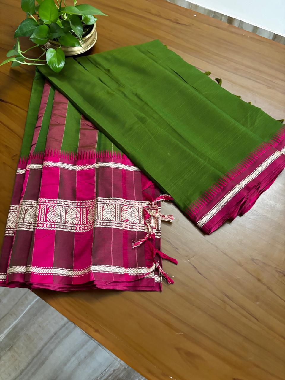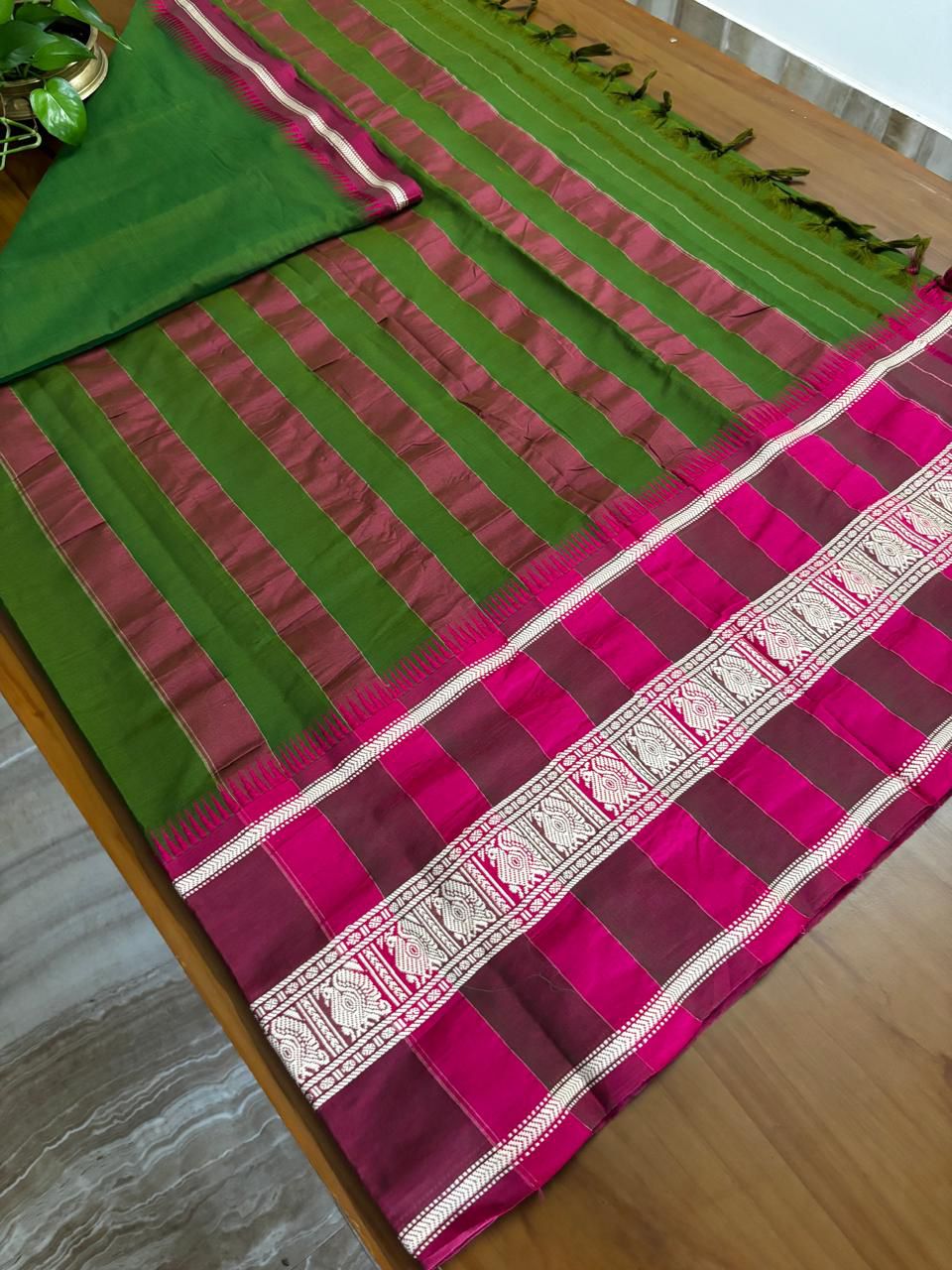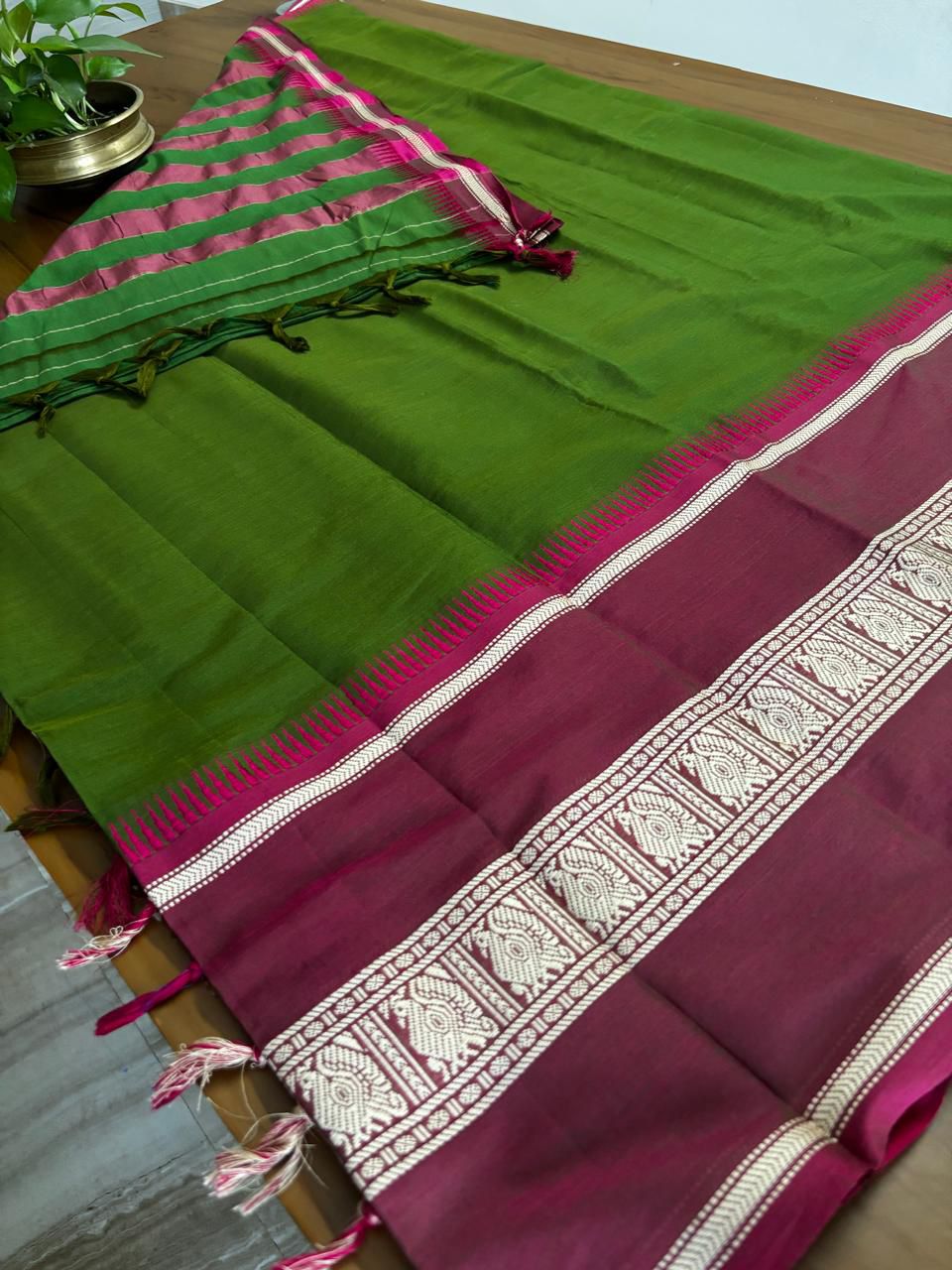 * Traditional handwoven saree with contrast borders