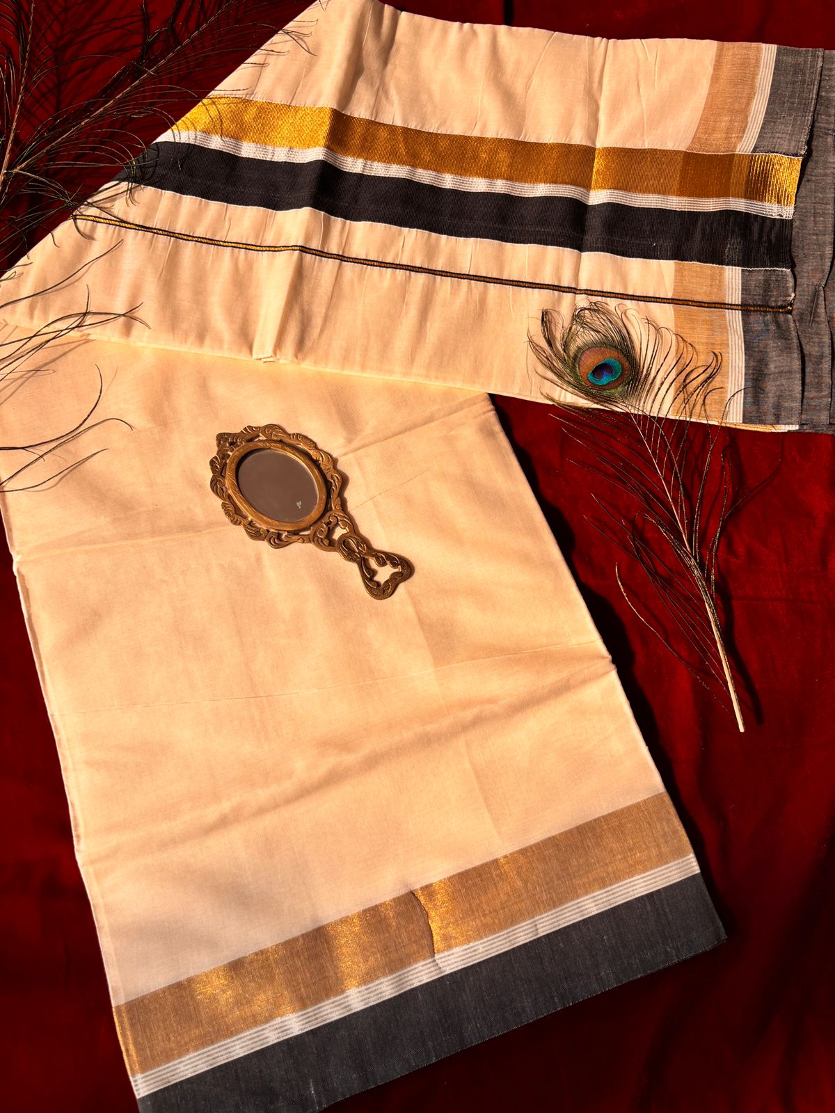 Soft cotton Kasavu saree